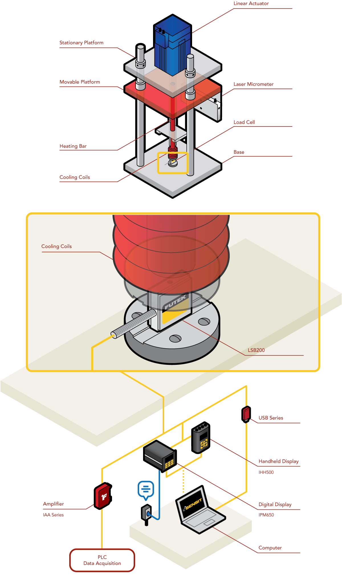 2、世界杯网页版_世界杯(中国) LSB200微型S型传感器安装在测力台架的底部,正对着加热棒和冷却盘管下方。LSB200传感器特殊的设计,使得传感器在台架加热和冷却降温的过程中,测试结果不受影响。