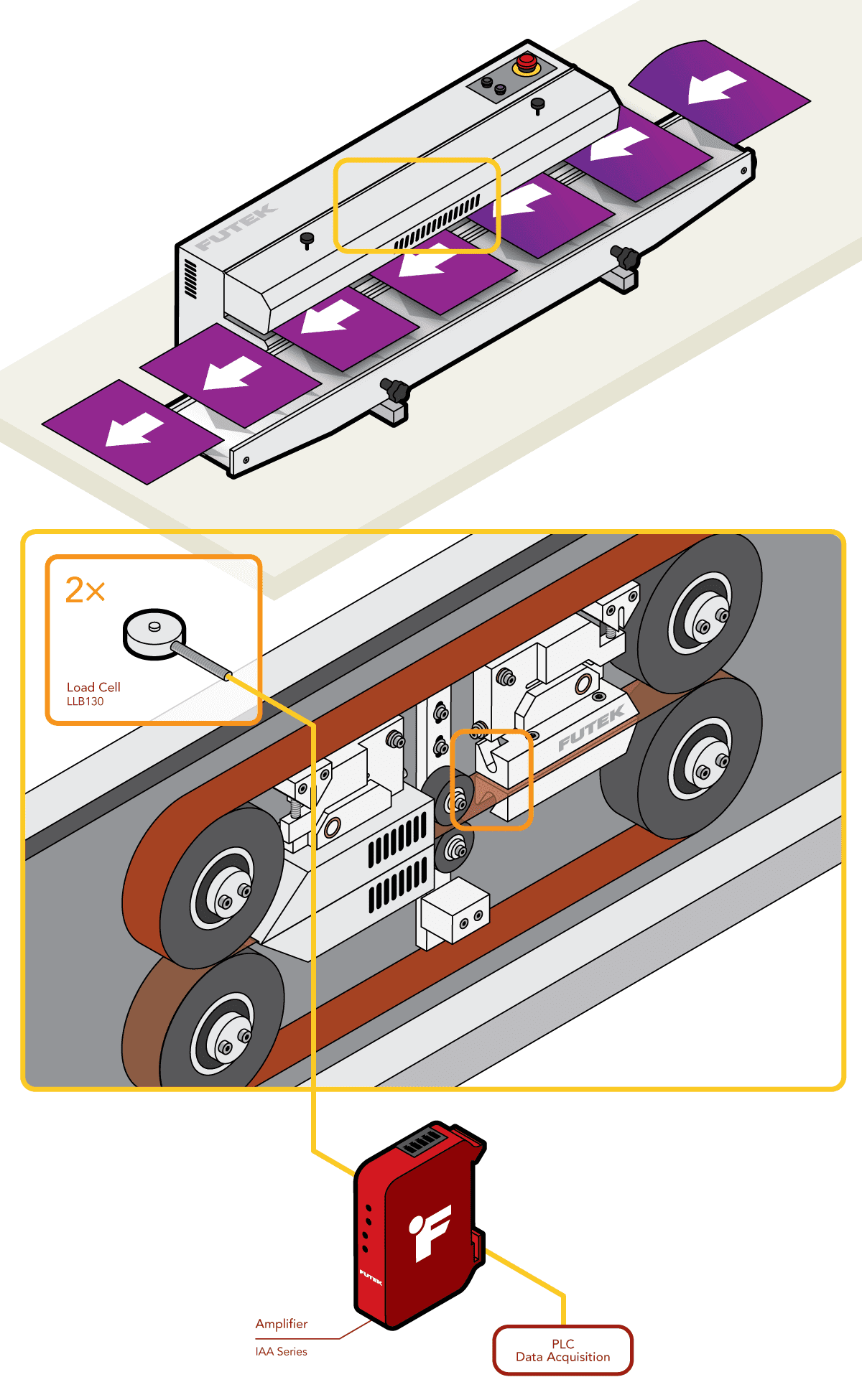 1、这个应用中,放置一对微型按钮型力传感器,这样就可以测量包装对加热棒施加的力。