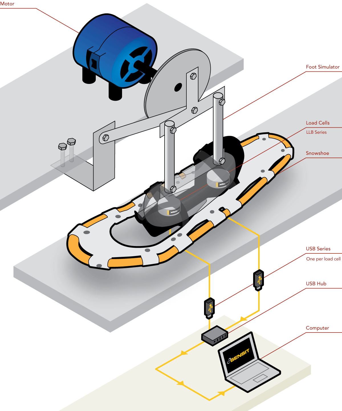 2、运用模拟测试台架,生产的雪鞋将接受耐久性试验。