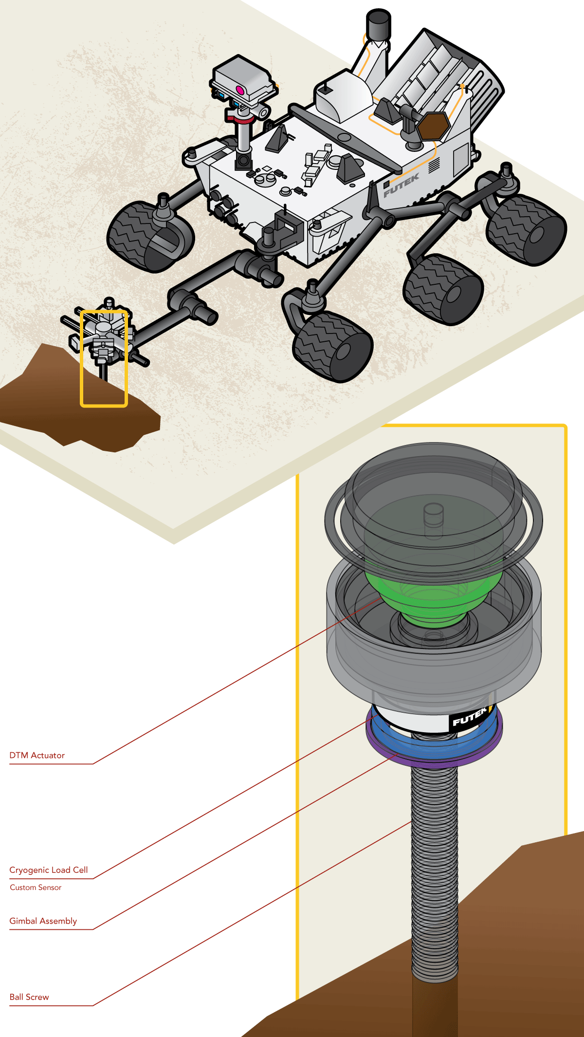 2、针对NASA喷气推进实验室“好奇号”火星探测车这项任务,世界杯网页版_世界杯(中国)公司开发出了一款能用于外太空超低温环境、双桥路、环型力传感器。该传感器安装于“好奇号”的钻臂上,用于监测钻头钻取火星岩石时机械臂受到的外力。双臂电桥的使用,提高了传感器的灵敏度,有助于传感器检测钻头装置自身的重量。