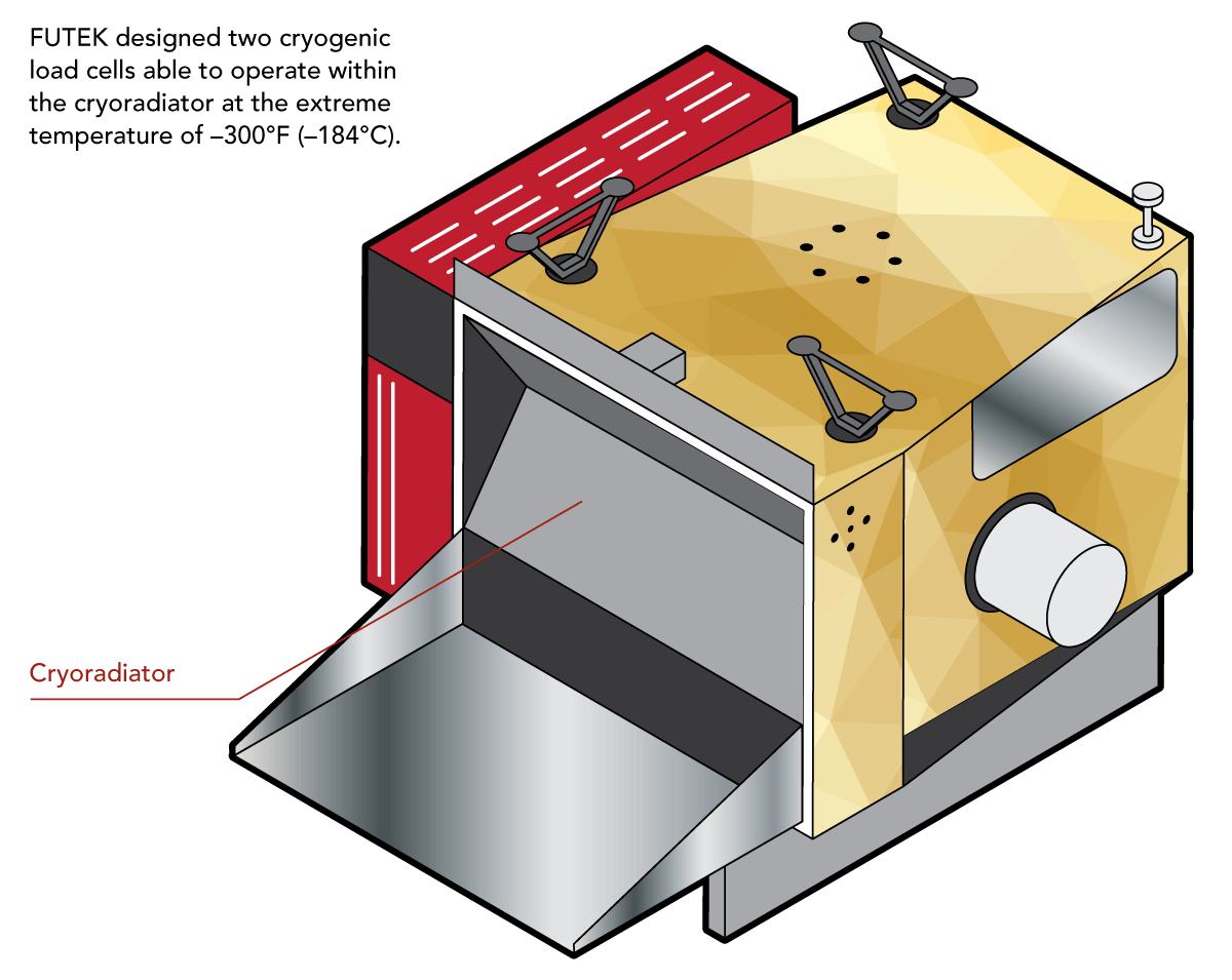 世界杯网页版_世界杯(中国)设计的两只超低温测力传感器,能够在VIIRS低温散热器零部件中的-184℃温度环境下进行工作。